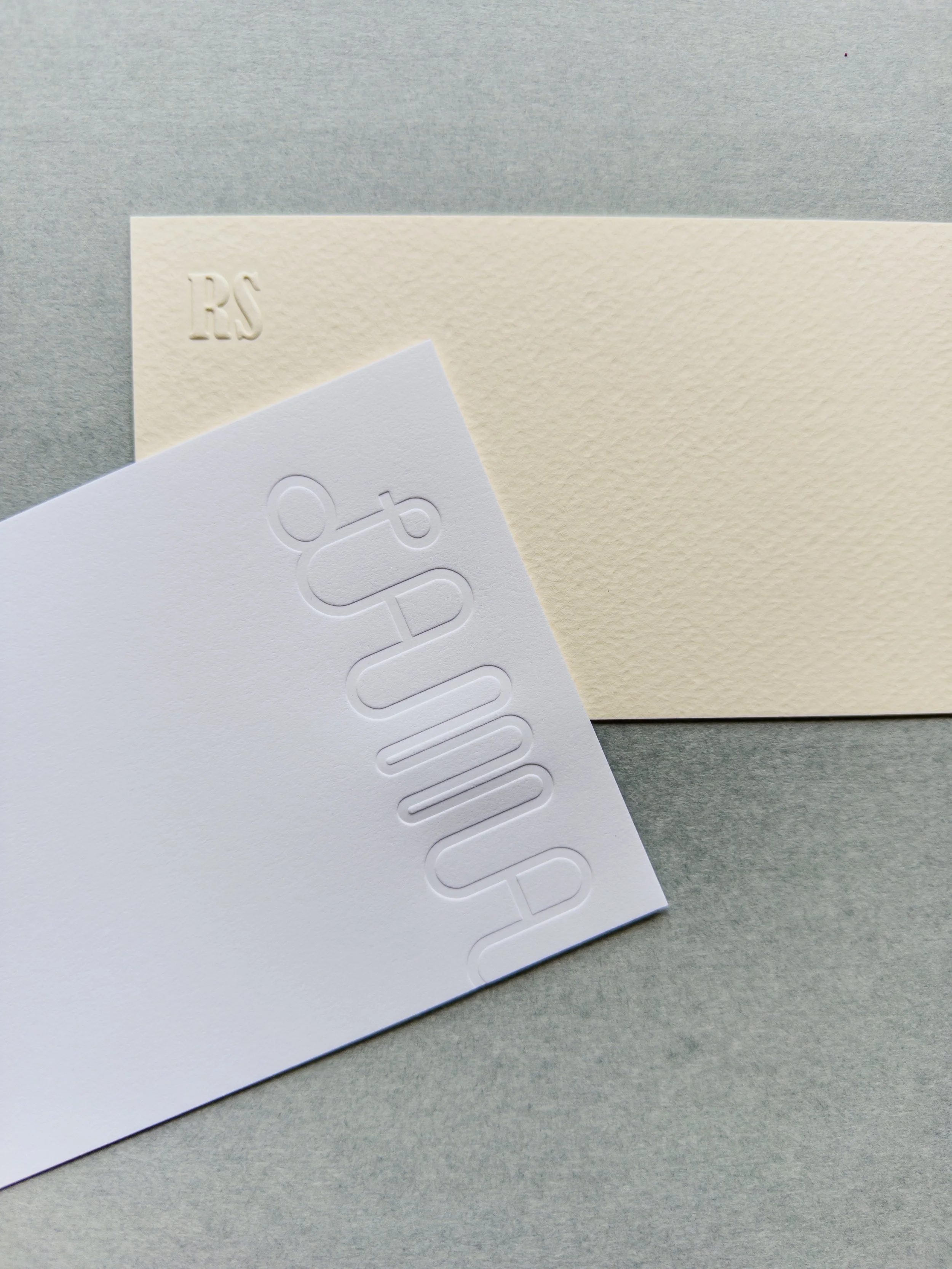 Embossing and debossing are opposites. Embossing is where the design is raised up from the paper. Debossing is where the design is pressed down into the paper. Whether we are using our engraving presses to emboss or our letterpresses to deboss, we are equipped to create tactile experiences without any ink necessary.
